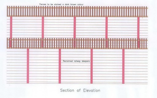 I put these constraints to the landscape gardener, and challenged him to come up with a solution. And he did! I’ve included some engineering drawings of the solution. The drawings are copyright Geomex Ltd, whom I commissioned to do the survey.
