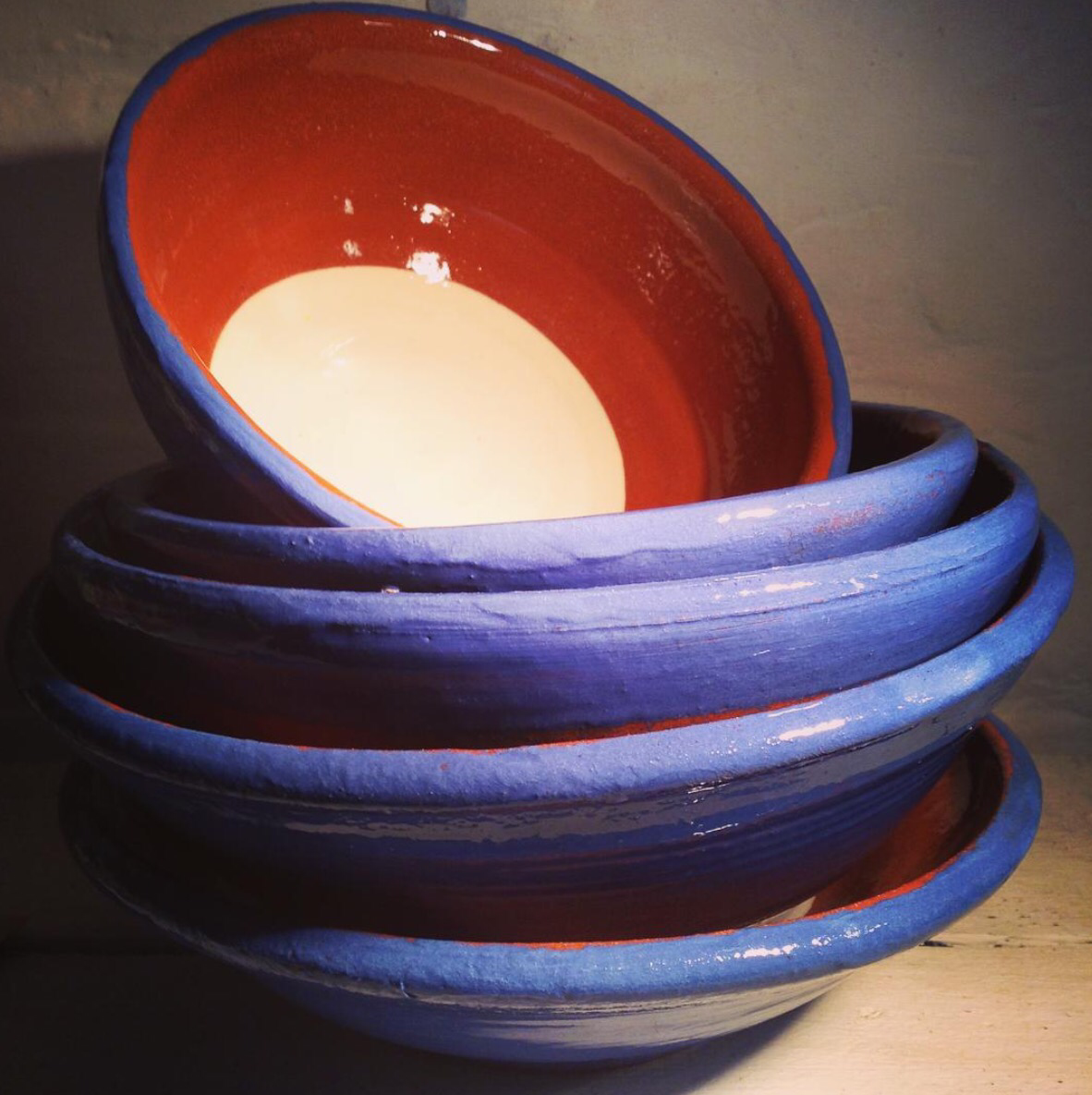 I popped along to Eastnor Pottery the other weekend, to pick up my latest set of fired pots, a stack of five serving bowls. The decoration is very simple, but really surprisingly effective, I think. I’m pleased with them anyway.